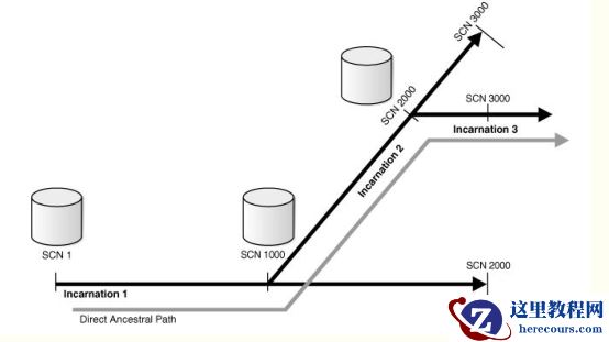 如图,SCN1到SCN1000过程中,数据库属于incarnation 1,一直发展到横向的SCN 2000,做了不完全恢复到了SCN 1