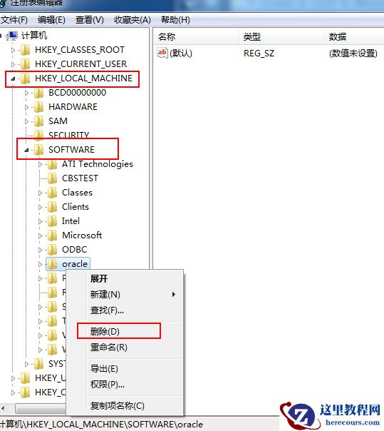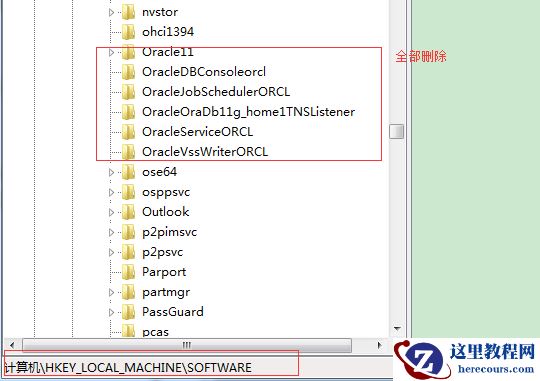 删除HKEY_LOCAL_MACHINE/SOFTWARE/ORACLE目录。