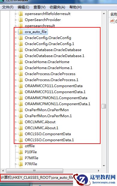 删除HKEY_CLASSES_ROOT目录下所有以Ora、Oracle、Orcl、 ORA或EnumOra为前缀的键。
