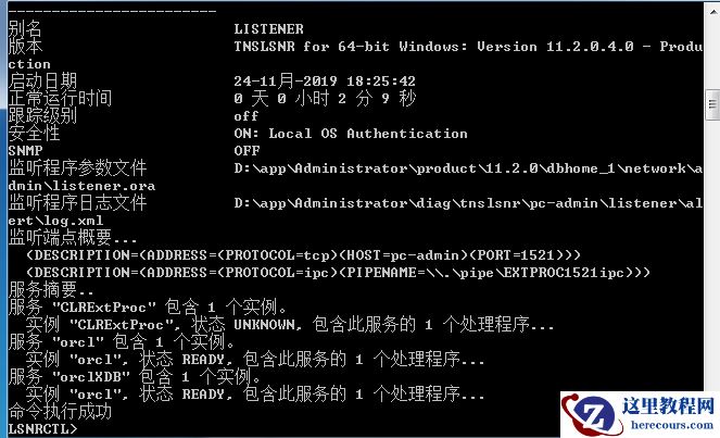 可以看到监听名称,监听日志位置,监听实例的状态等信息