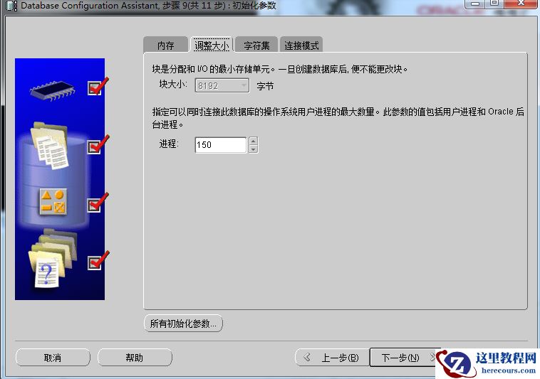 这里我们由于创建数据库采用的是模板创建的,所以块大小就是8k无法调整,但是我们可以调整进程数
