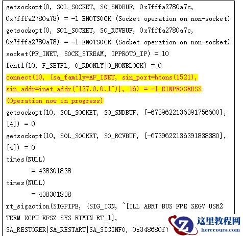 要找到 LREG 进 程正在做什么,我使用 STRACE OS 实 用程序来跟踪它的工作。 11g 中的 PMON 进 程的 输 出不是完全相同的,因 为 它不是一个 专门 用于在 监 听器中注册 实 例的 过 程。另一方面, LREG 的唯一目的就是 动态 注册, 这样 可以解 释 两个 进 程之 间 使用的系 统调 用之 间 的差异。