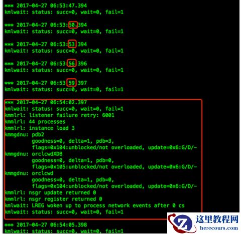 从 dump 出来的信息可以看出, lreg 进程每 3 秒更新一次状态,而到约每 60 秒时便会实例信息进行注册。以下在监听没有启动的情况下, LREG woken up to process network events after 0 cs 之后成功的数量依然为 0 ,说明此时无法注册成功。
