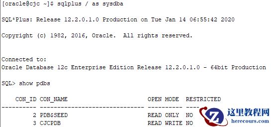[oracle@cjc ~]$ export ORACLE_SID=cjcdb