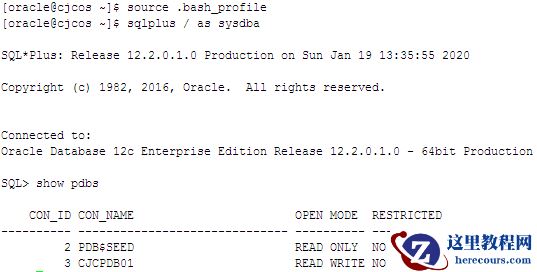 #export ORACLE_SID=cjcdb