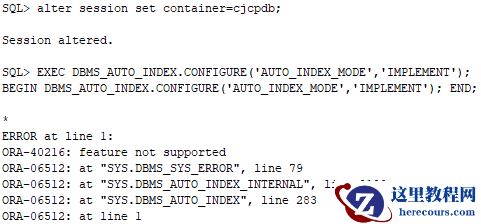 ORA-40216: feature not supported ORA-6512: at "SYS.DBMS_SYS_ERROR", line 79 ORA-6512: at "SYS.DBMS_AUTO_INDEX_INTERNAL", line 9180 ORA-6512: at "SYS.DBMS_AUTO_INDEX", line 283 ORA-6512: at line 1