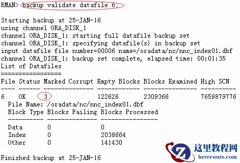 RMAN>backup validate datafile 6;
