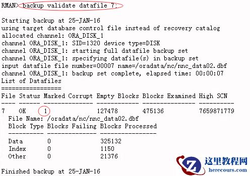 RMAN>backup validate datafile 7;