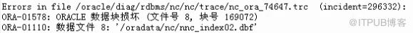 Oracle 日常问题- 坏块 修复 一:问题现象 (1)NC 进行收款结算时报错 (ORA-01578)
