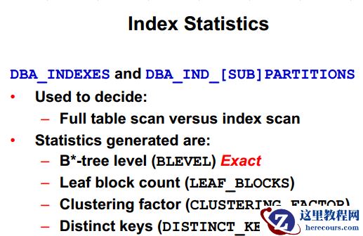LEAF_BLOCKS: 用于计算 full index scane及index range scan的成本 。
