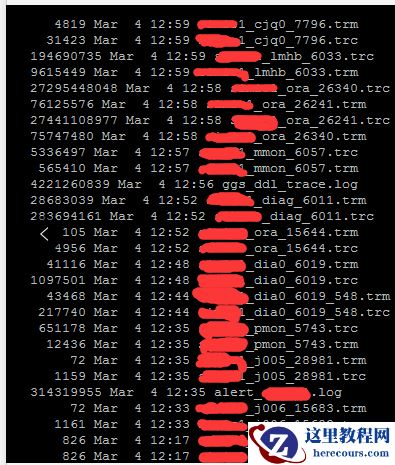 可以看到有两个文件特别巨大,ora_26340.trc, ora_26241.trc 。Oracle 的trace 文件名中的数字实际上是操作系统的进程编号。