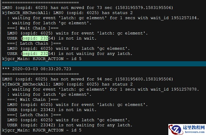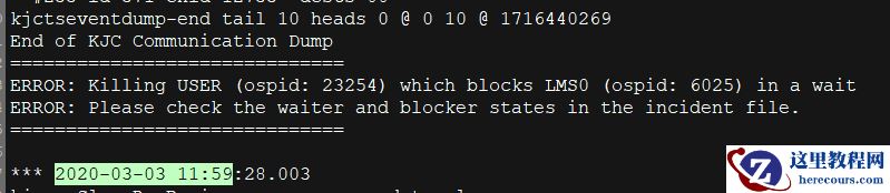 这里说的是LMS 进程被用户进程23254 所阻塞,阻塞的时间太长,LMON 进程把23254 进程杀掉了。这也是为什么客户反馈说3 月3 日下午业务运行良好, 因为阻塞的进程被LMON 进程杀掉了。