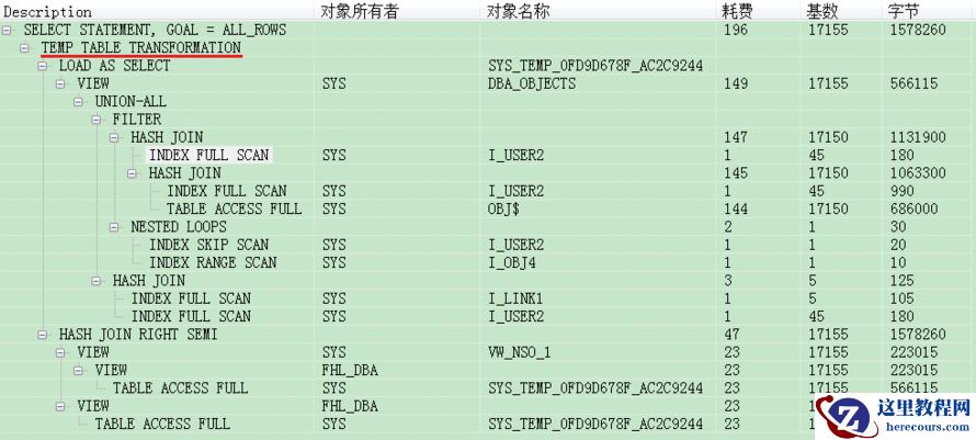 例如:执行如下代码,with内的表被使用了两次,oracle会自动生成一个临时表来存放with内的表。