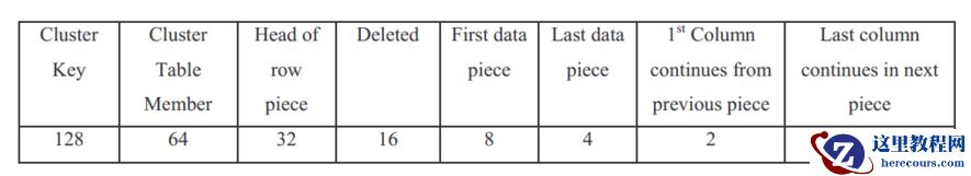 行头由Row Flag、Lock Byte(ITL entry) and Column Count组成。行头由一个字节大小的 the Row Flag开始,它持有一个位掩码来显示行状态。位掩码解码如下: