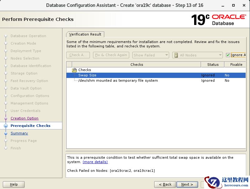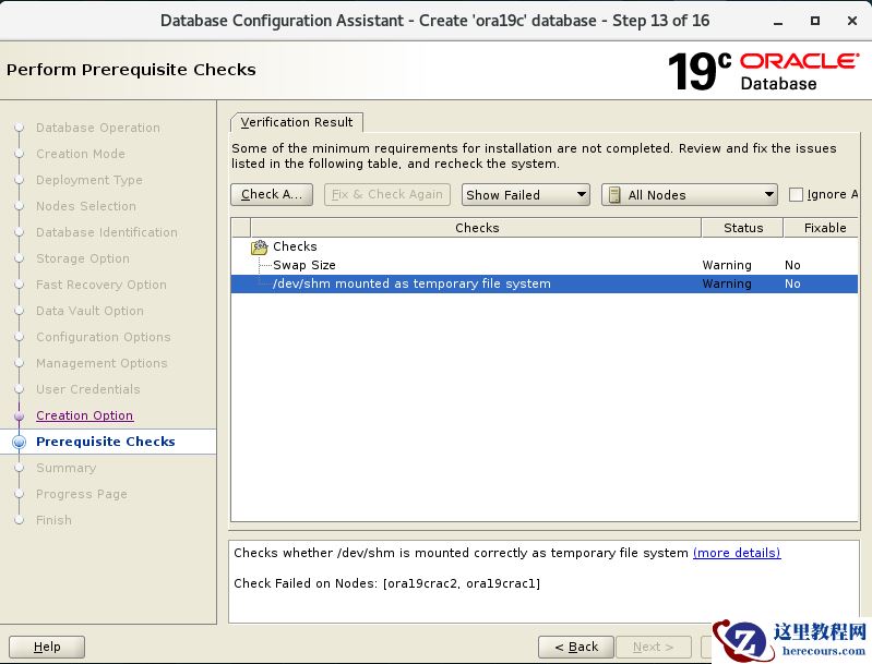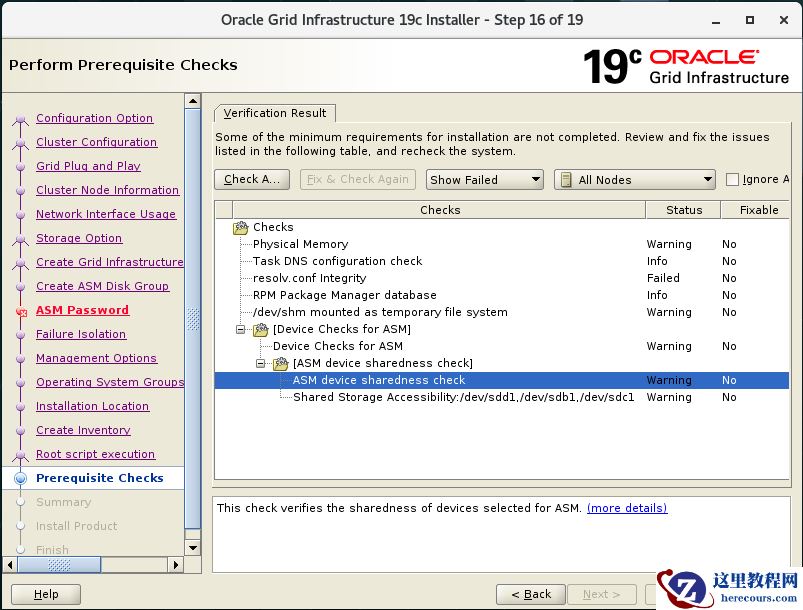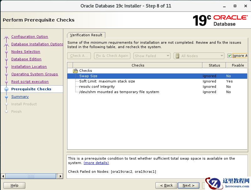 [grid@ora19crac1 ~]$ $ORACLE_HOME/runcluvfy.sh stage -pre crsinst -n "ora19crac1,ora19crac2" -fixup -verbose …… PRVF-5636 : The DNS response time for an unreachable node exceeded "15000" ms on following nodes: ora11grac2,ora11grac1 File "/etc/resolv.conf" is not consistent across nodes Check: Time zone consistency Result: Time zone consistency check passed Fixup information has been generated for following node(s): ora11grac1,ora11grac2 Please run the following script on each node as "root" user to execute the fixups: '/tmp/CVU_19.0.0_grid/runfixup.sh' Pre-check for cluster services setup was unsuccessful on all the nodes.