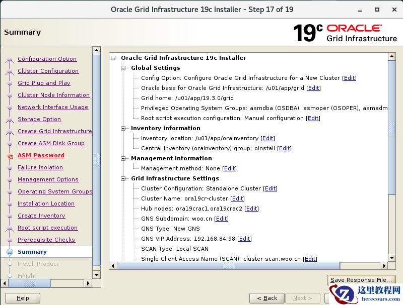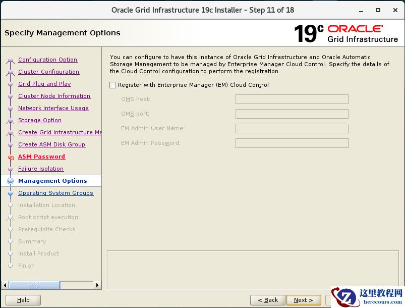 备注:19c中MGMT是可选项,经过过12c的摧残,我相信大部分人和企业都不愿意使用,在安装GI的时候选择No即可。