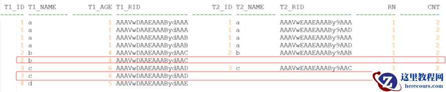 T1_ID T1_NAME T1_AGE T1_RID T2_ID T2_NAME T2_RID RN CNT
