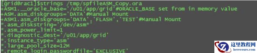 [grid@rac1]$kfed read /dev/asm-diskb | grep -E 'spf|ausize' kfdhdb.ausize: 1048576 ; 0x0bc: 0x00100000 <<<<<1M kfdhdb.spfile: 437 ; 0x0f4: 0x000001b5 <<<<offset 437 kfdhdb.spfflg: 1 ; 0x0f8: 0x00000001 <<<<个数1