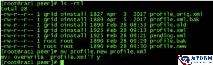 [root@rac1 peer]# pwd /u01/app/11.2.0/grid/gpnp/rac1/profiles/peer [root@rac1 peer]# cp profile.xml profile.bak