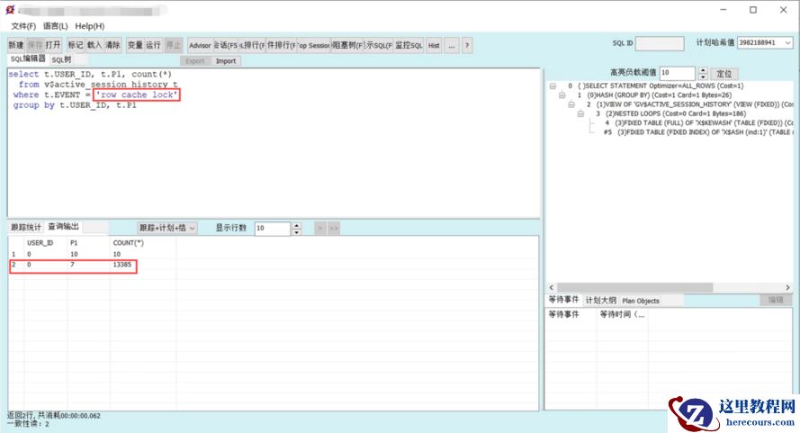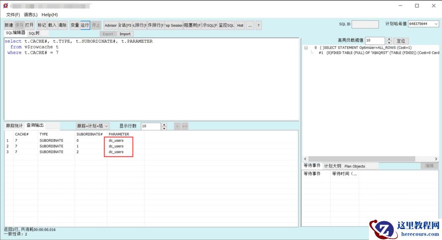 对于 row cache lock 等待事件,我们要获取 session 的 P1 参数。