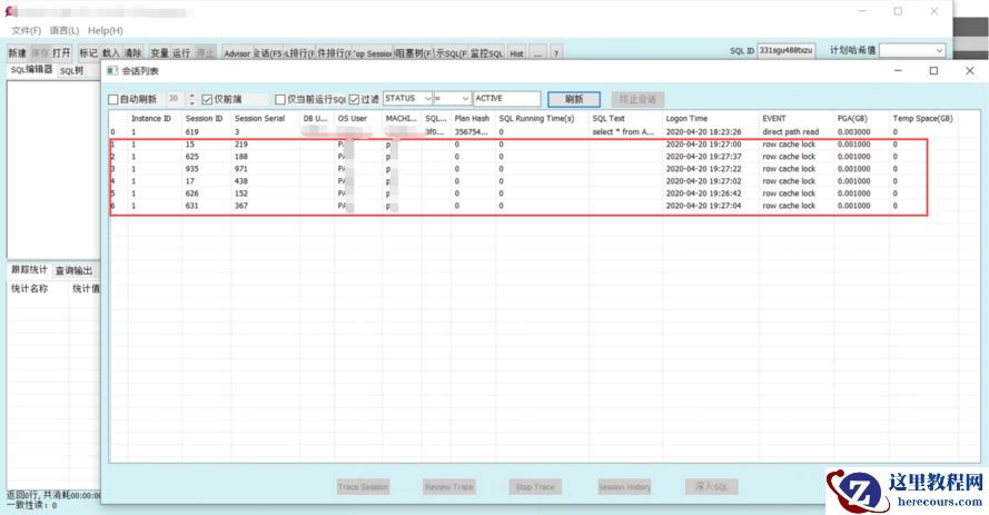 不过这些 session 阻塞在动态变化,且并没有执行 SQL 。