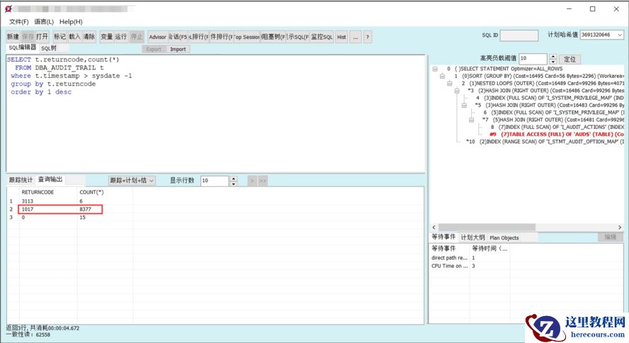 和 dc_users 相关的,通常是由于用户登录引发。从审计视图中,查看当天的登陆审计,发现错误码 ORA-1017 占了绝大部分。