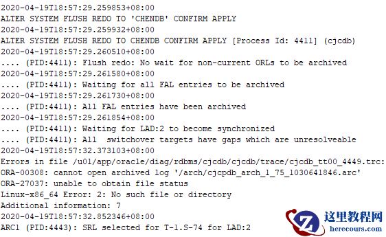 归档发生备库端了,开始尝试读取