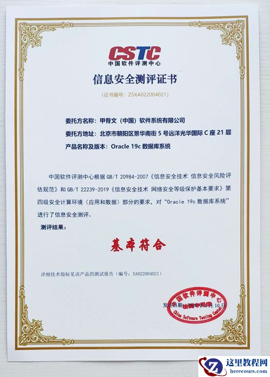 评测机构给与的测评结论:“Oracle 19c 数据库系统”具有较为完备的安全保护能力,在数据库身份鉴别、访问控制、安全审计方面、数据备份与恢复、剩余信息保护、个人信息保护方面安全功能设计完善,能够抵御一定程度的攻击。“Oracle 19c 数据库系统”基本符合等保 2.0 的数据保护标准,安全风险低。
