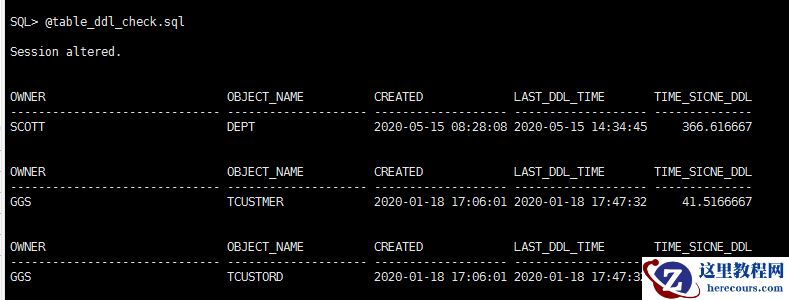 检查源端数据库中修改了表结构的表,(LAST_DDL_TIME-CREATED)*24*60代表分钟数