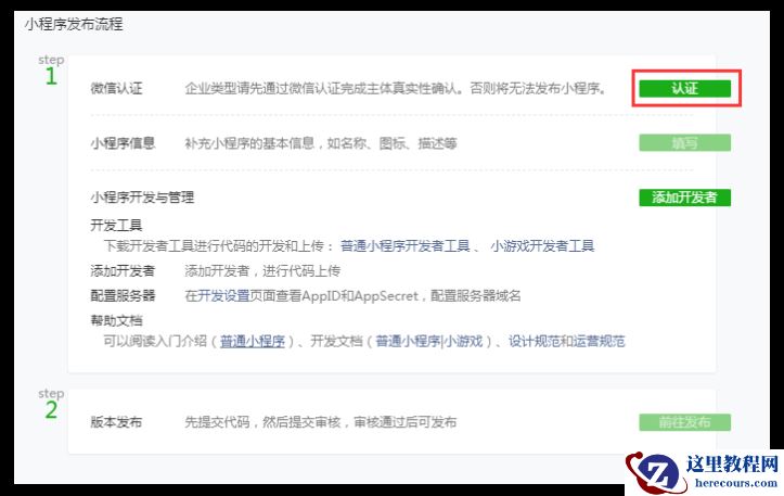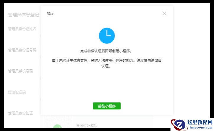 12填写完成之后,小程序注册认证时间大约1-5天,认证成功后下图的红线中会显示“认证成功”。