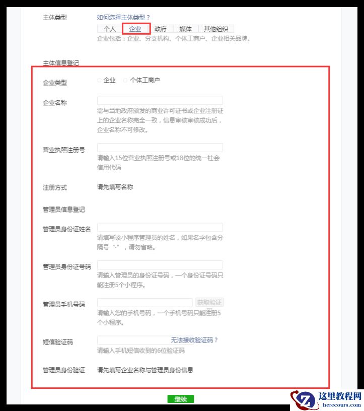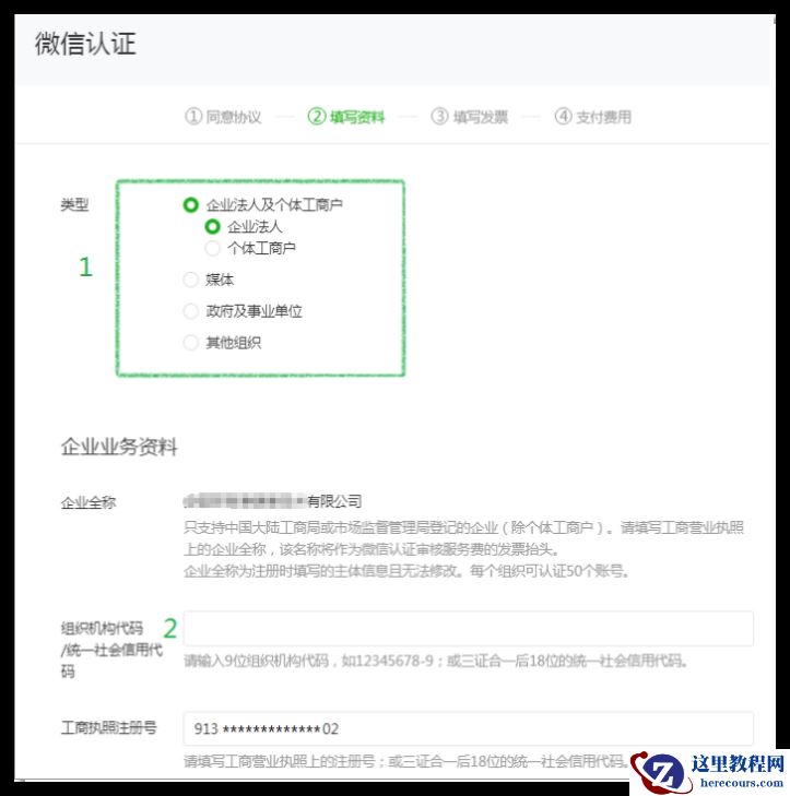 11.填写资料:选择认证主体类型,提交相应的认证材料。