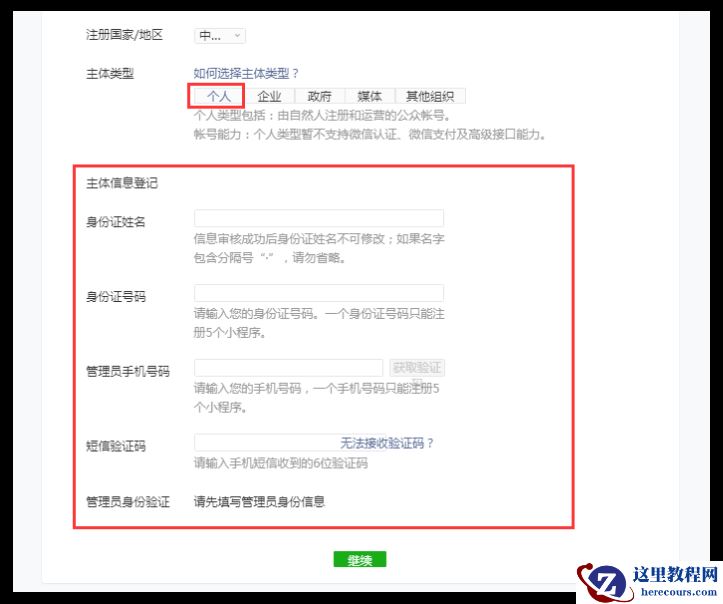 如果您选择个人,填写页面提示您要填写的内容即可。