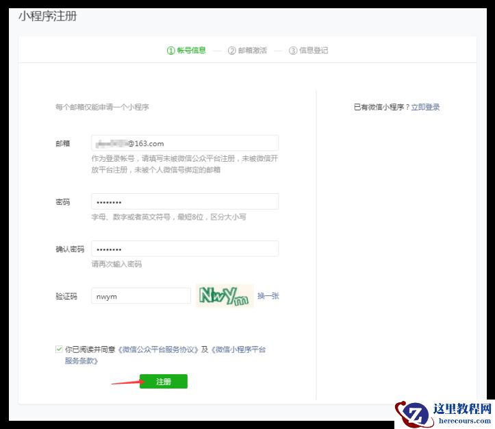 注: 如果有已经认证过的公众号,直接就可以快速注册并认证小程序。