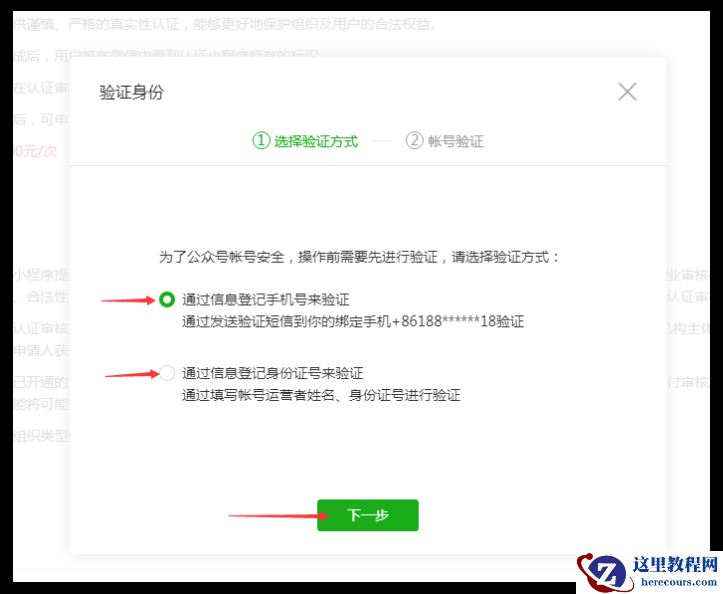 10.点击认证申请微信认证进入验证身份