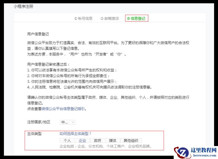 2.选择注册类型-小程序