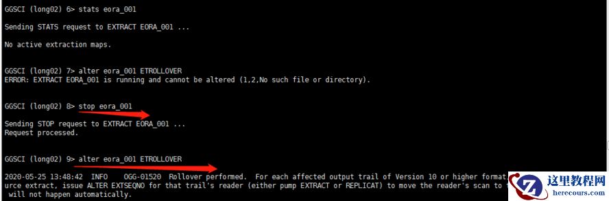 5 操作常见,生产遇到ogg-01416,ogg-01032(源端)都使用这个命令alter eora_001 ETROLLOVER解决问题