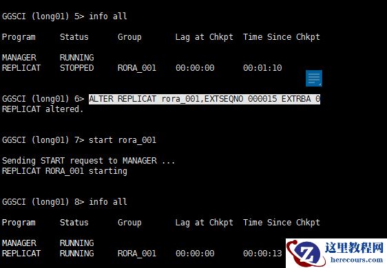 需要手工指定:ALTER REPLICAT rora_001,EXTSEQNO 000015 EXTRBA 0