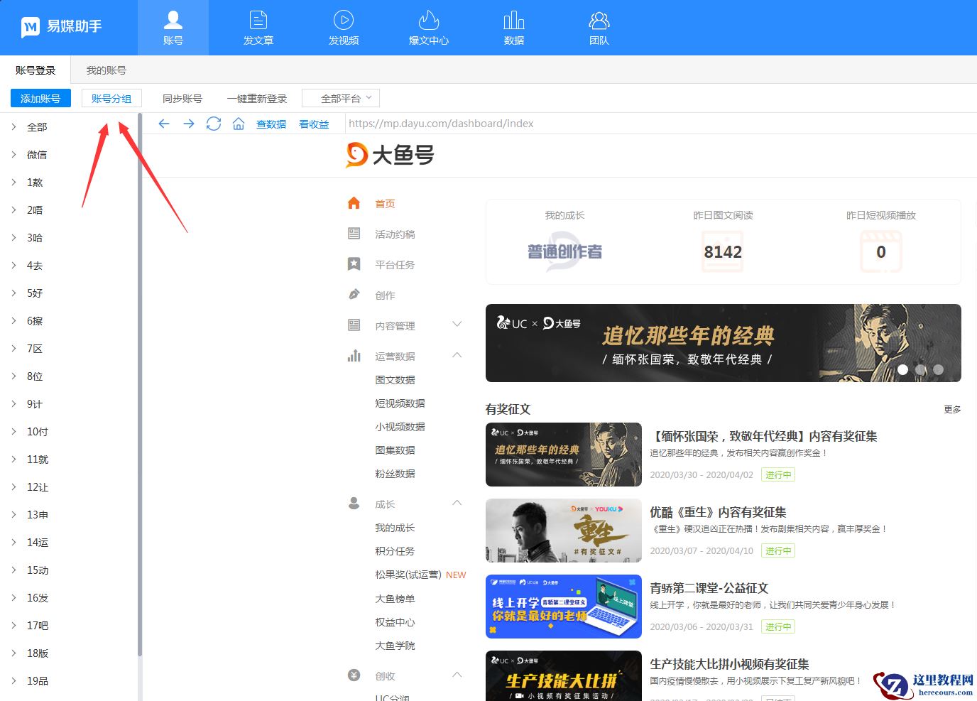 要是你们平台账号非常多的话,强烈建议设置一下账号分组,账号按照你的实际使用进行编组,将来一键分发不用一个一个选择了。点击账号分组按钮,选择账号分组弹窗添加分组(左下角),根据你的想法输入分组名,点击设置账号,根据使用选择对应账号就可以了。