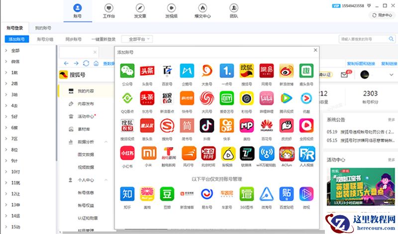 因为软件的核心功能必须主要基于自媒体账号来实现,所以找到添加账号按钮,点击准备添加的自媒体平台,假如你是第一次接触此类工具,使用账密登录,建议不要用扫码形式登录自媒体号。