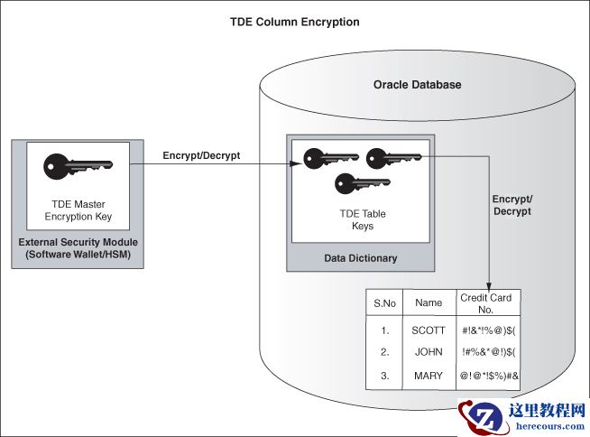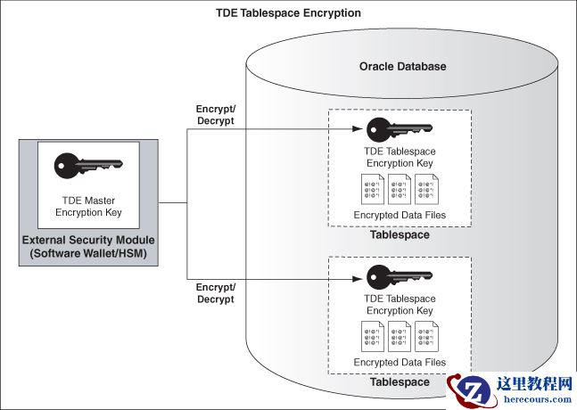 TDE列加密和TDE表空间加密都使用基于密钥的两层体系结构。即使检索到加密数据,也无法理解,直到发生授权解密为止,这对于授权访问该表的用户是自动的。
