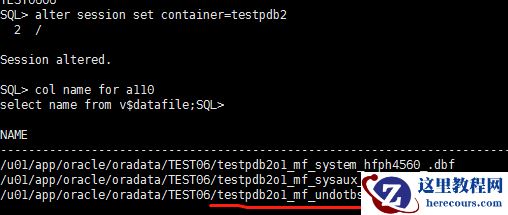 --以下是db文件对应的归属pdb test0606包含4个db文件alter session set container=test0606;
