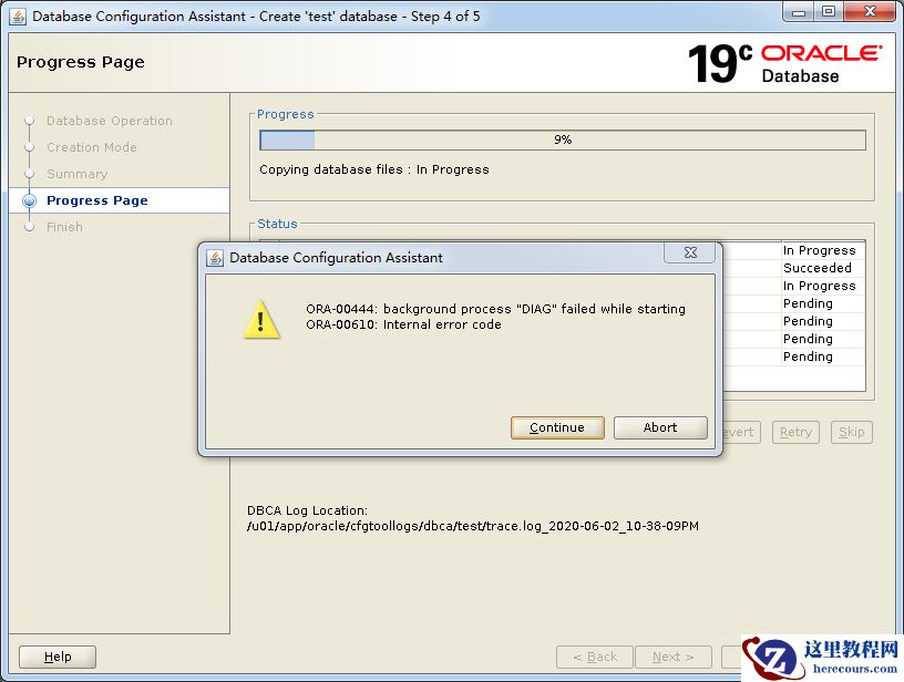 第一次建立,执行dbca,选择create db之后运行不久报错