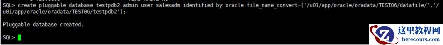 create pluggable database testpdb2 admin user salesadm identified by oracle file_name_convert=('/u01/app/oracle/oradata/TEST06/datafile/','/u01/app/oracle/oradata/TEST06/testpdb2');