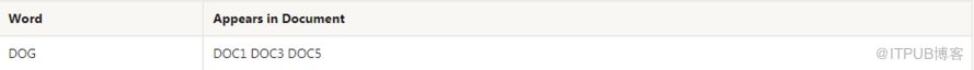 例如,在单个初始索引操作之后,单词DOG可能具有如下条目: