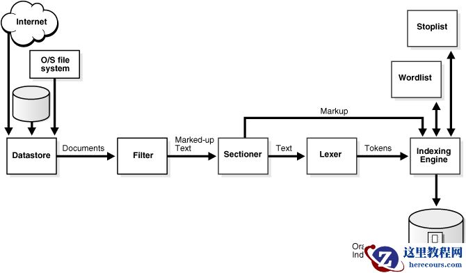通过使用CREATE INDEX语句创建索引的Oracle文本索引来启动索引过程,该索引根据您的参数和首选项进行组织。