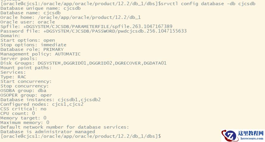 12cRAC以上版本中spfile的路径信息是配置到ASM中,我们可以通过srvctl config database -db db_name来获取,如下所示: