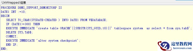 由于数据库多了两个对象,存储过程 DBMS_SUPPORT_DBMONITORP 和触发器DBMS_SUPPORT_DBMONITOR,恶意破坏了数据库基表tab$,导致数据库无法使用。