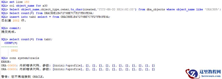当前数据库处于open状态(Windows平台下可以open数据库,Linux平台下无法open,只能mount数据库),但是所有非sys用户均无法连接数据库,连接提示报错ORA-00600[kzrini:!uprofile]后连接中断,最终导致数据库无法提供服务。