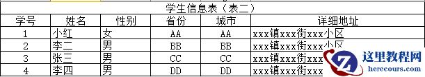 将“地址”字段拆成“省份”“城市”,“详细地址”,此时每个字段就是单一属性了,当前的设计就符合第一范式,