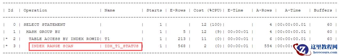 create index idx_t1_status on t1(status);